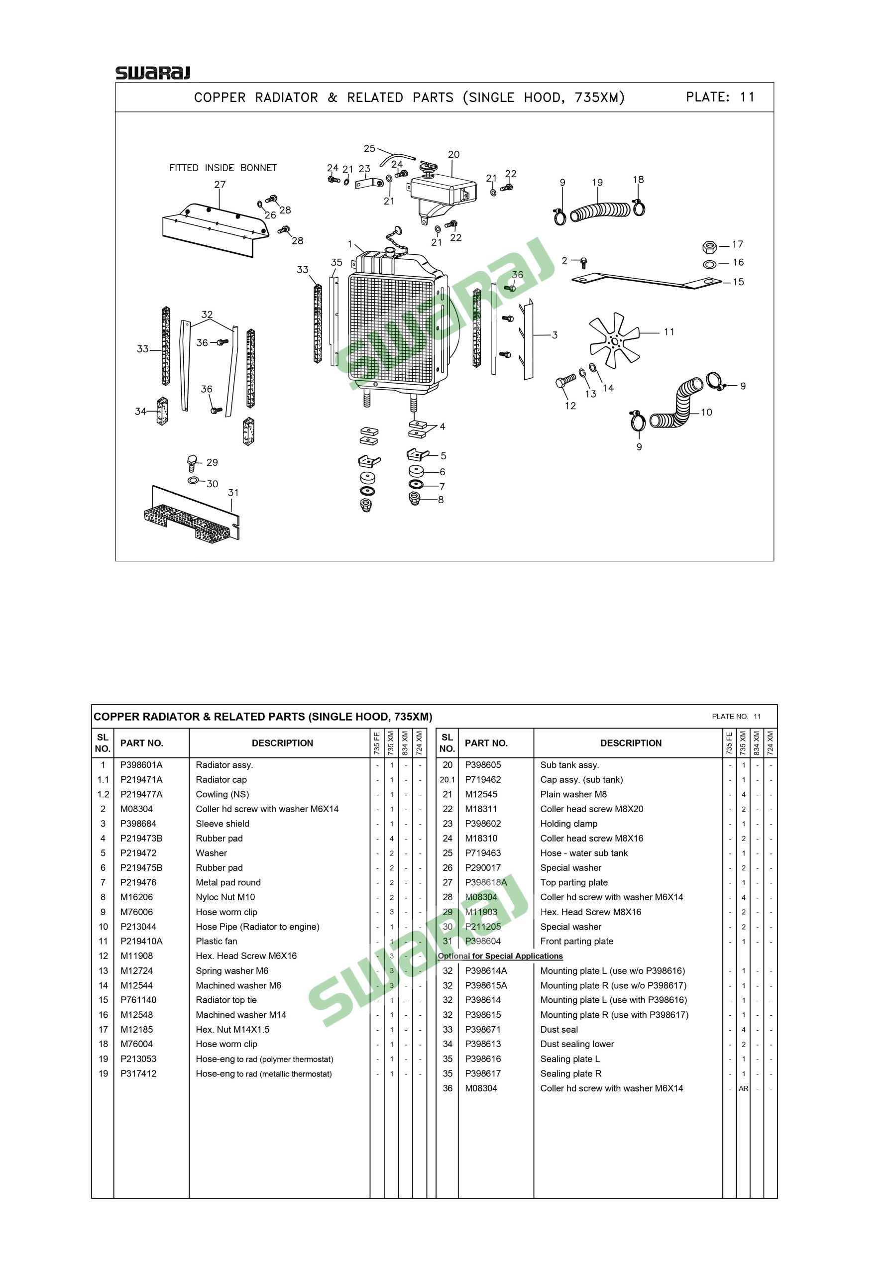Copper Radiator & Related Parts (Single Hood, 735XM) Plate 11
