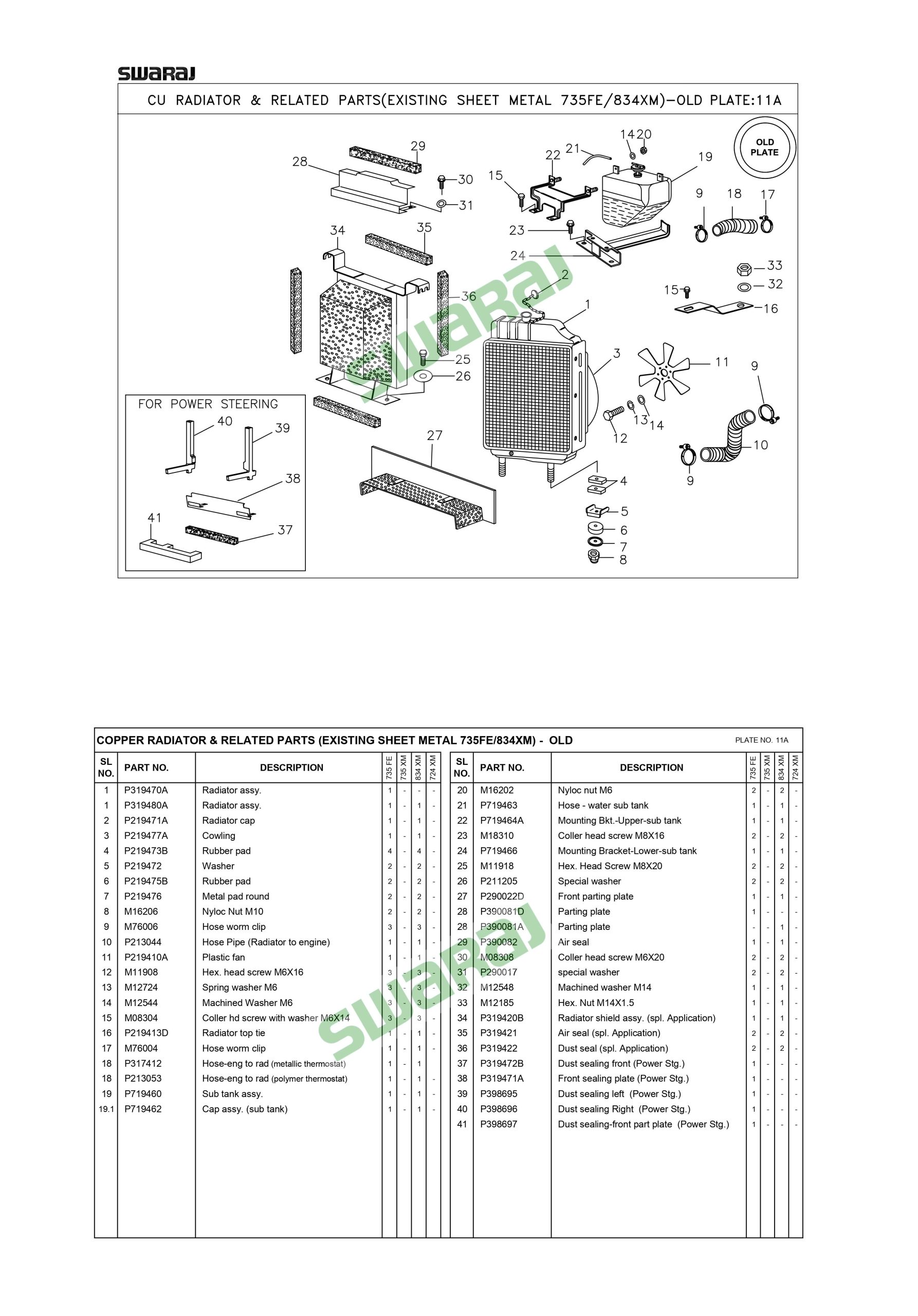CU Radiator & Related Parts(Existing Sheet Metal 735FE Or 834XM)-Old Plate 11A
