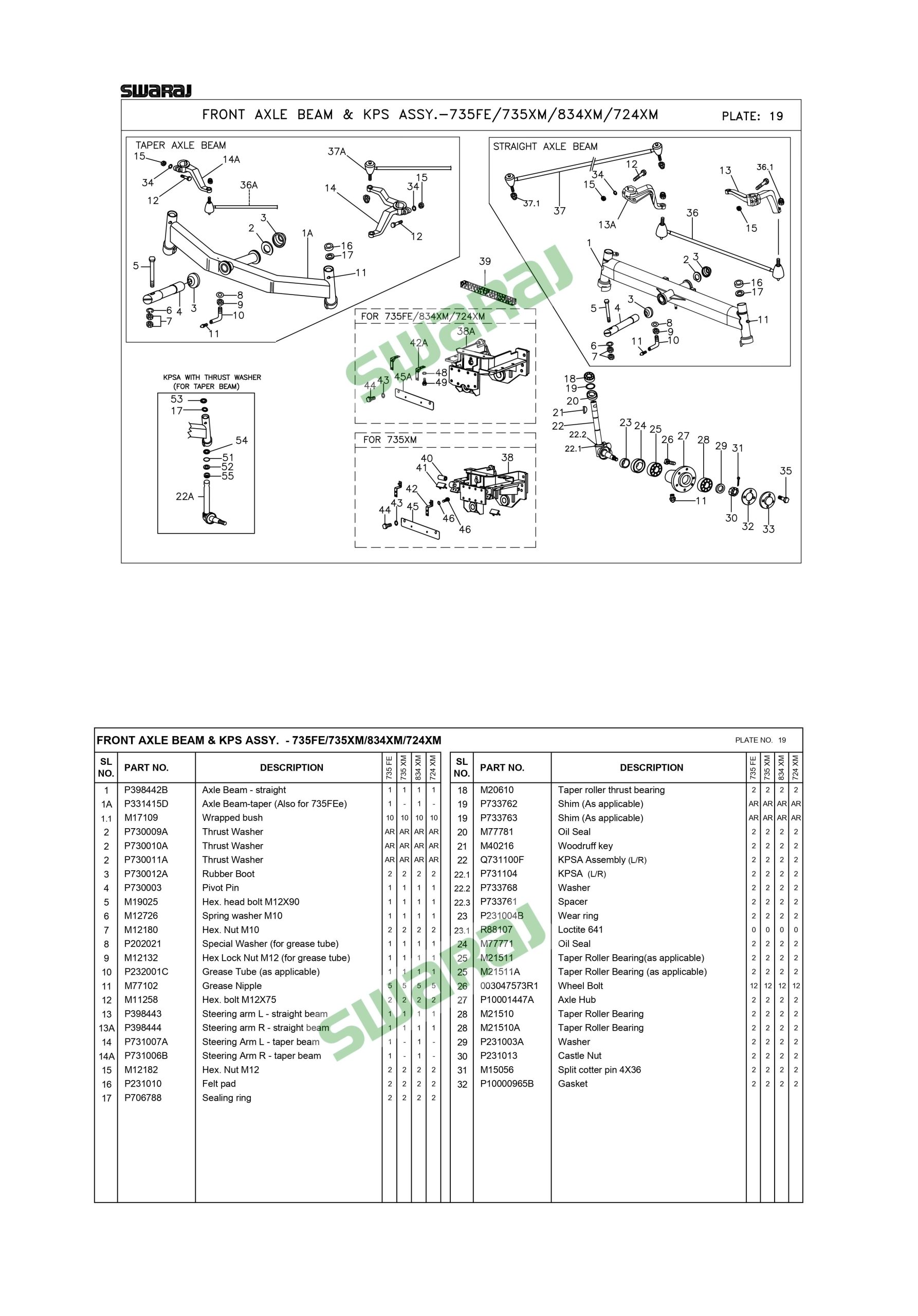 Front Axle Beam & KPS Assy. – 735FE Or 735XM Or 834XM Or 724XM Plate 19
