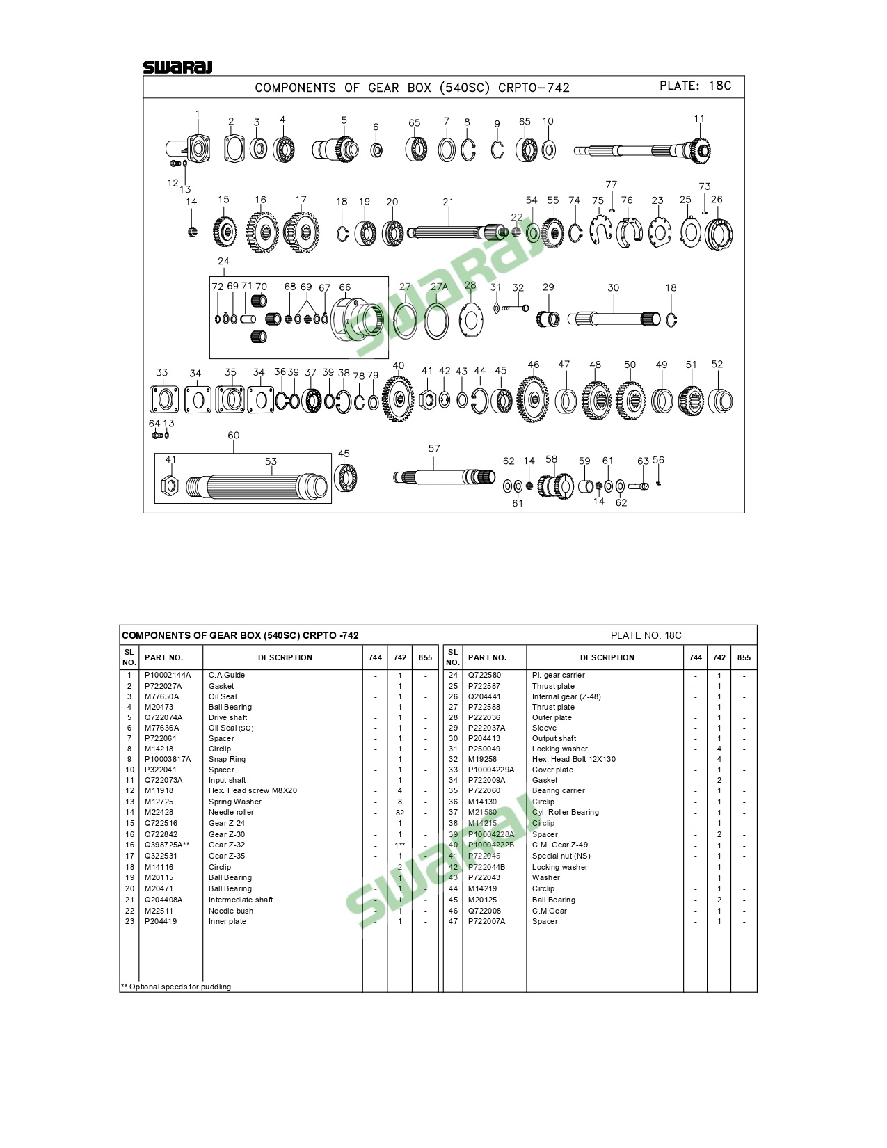 COMPONENTS OF GEAR BOX (540SC) CRPTO -742 01