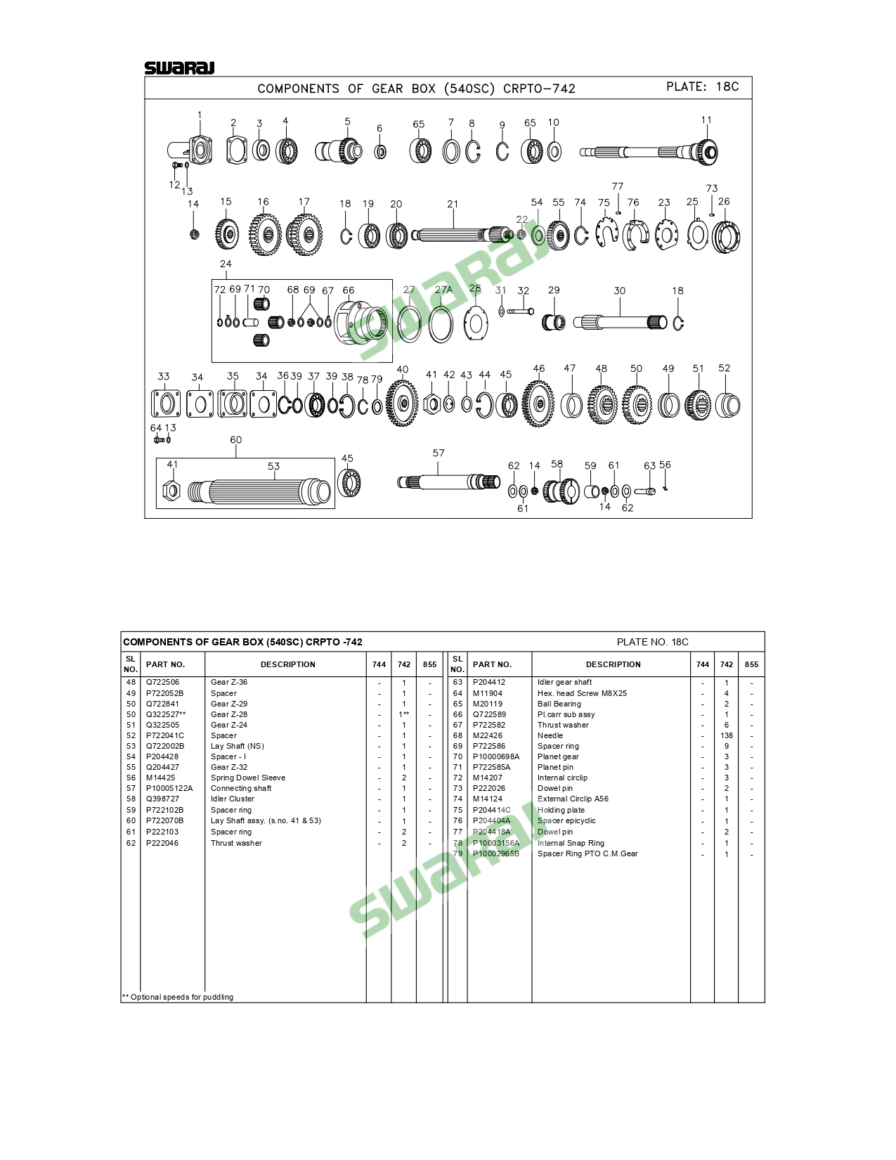 COMPONENTS OF GEAR BOX (540SC) CRPTO -742 02