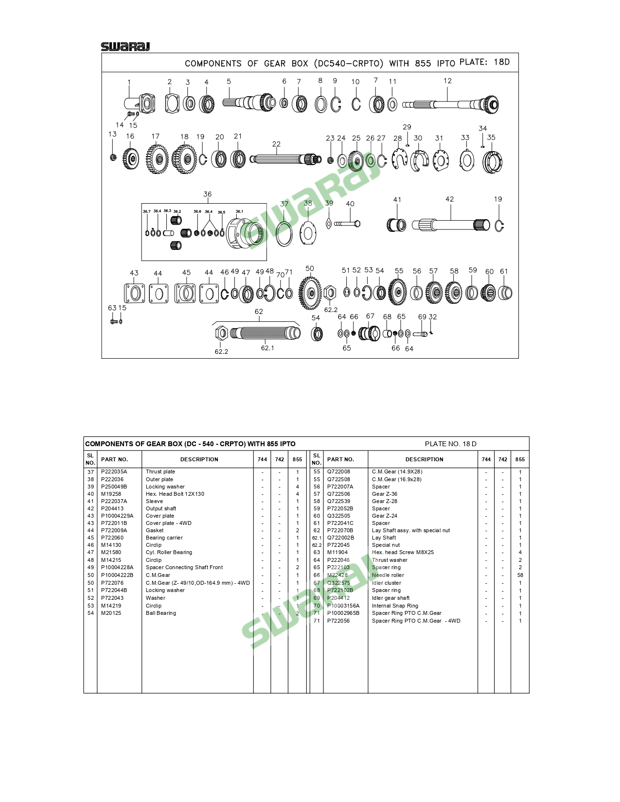 COMPONENTS OF GEAR BOX (DC – 540 – CRPTO) WITH 855 IPTO 02