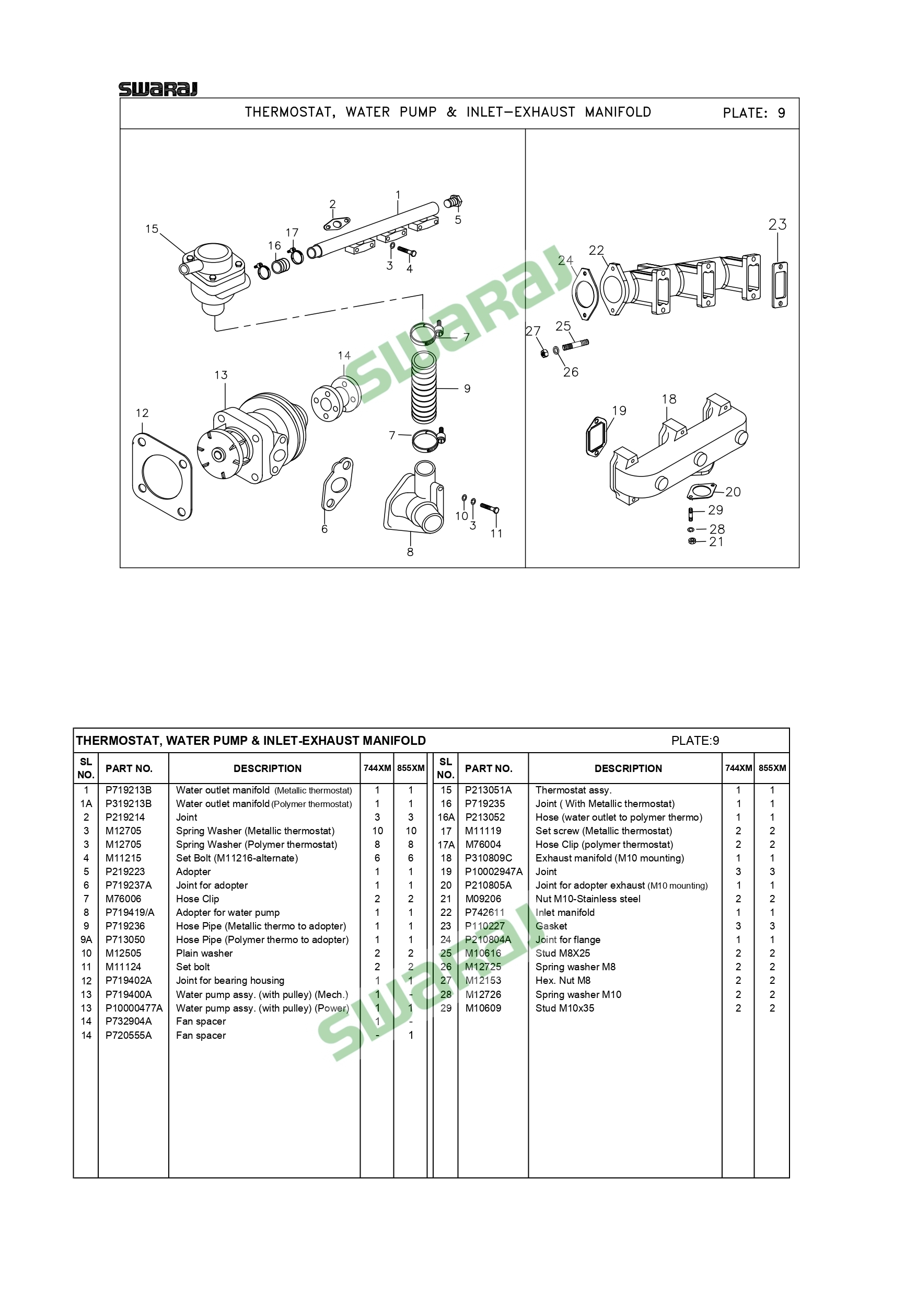 Thermostat, Water Pump & Inlet-Exhaust Manifold 9